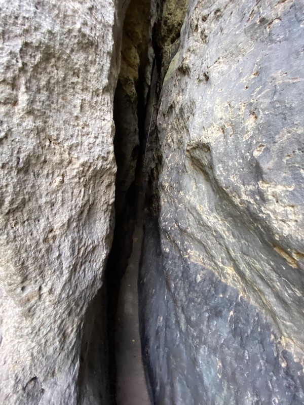 The start of the second part is more interesting as you have to squeeze youself through a crack and then climb up steps inside a “chimney”.