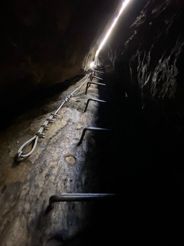 After another squeeze through a crack, a few wooden and a few more iron steps, the Zwillingstiege are, unfortunately, already ending.